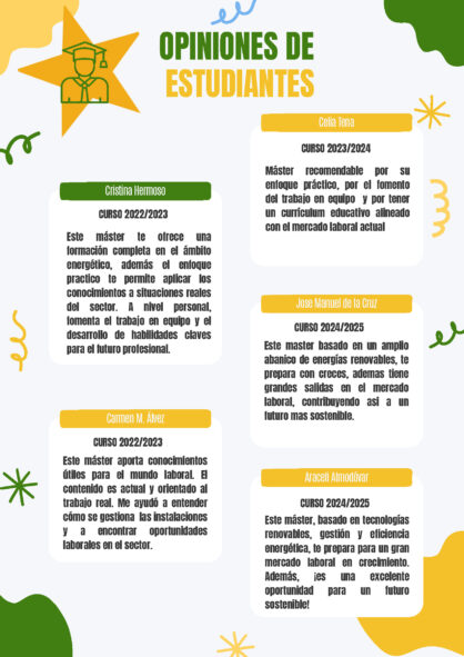 El Máster tiene gran interés para las empresas del sector energético de la región de Extremadura, es más han sido consultadas por la Comisión de Preparación del Título en relación al tipo de titulado que ellas demandan para su incorporación en sus plantillas. En Extremadura hay un gran número de instalaciones fotovoltaicas, plantas termosolares, plantas de generación térmica y eléctrica con biomasa, y se están instalando un gran número de instalaciones de autoconsumo con el nuevo RD recientemente aprobado. Esto supone un gran impulso para que los alumnos estén interesados en la implantación de un Máster como el que se propone en esta memoria. Además, este lleva el beneplácito de prácticamente todas las empresas del sector energético de Extremadura, que han participado para la elaboración del mismo con sus ideas y planteamientos, e incluso de empresas del territorio nacional.